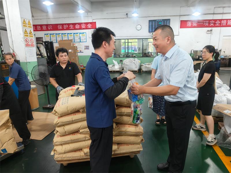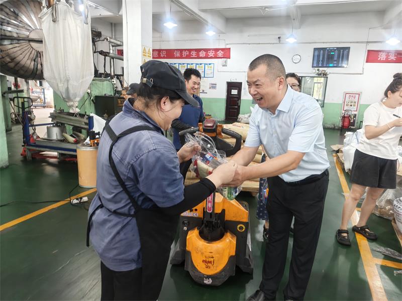 一份份清凉送到员工手中,当员工们接过这些饮品时,脸上纷纷露出了感激的笑容。那一杯杯清凉的绿豆汤,散发着淡淡的清香,不仅能够消暑解渴,更承载着海宁市总工会、浙江金彩新材料有限公司工会对员工的关爱之情;一杯杯酸梅汤,也在瞬间为员工们驱散了夏日的燥热,带来了丝丝凉意。