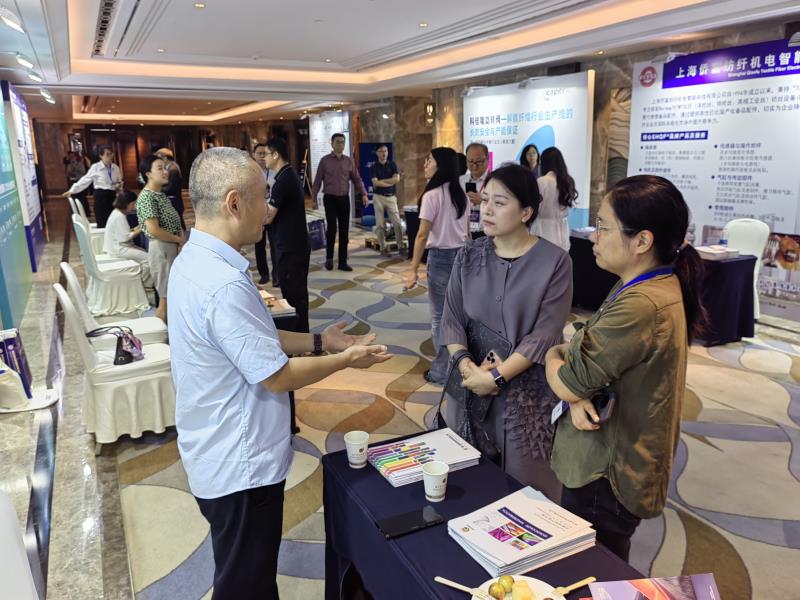 本次论坛还特别设立了商务展示区,浙江金彩新材料有限公司将公司先进的产品与技术解决方案直观呈现给行业伙伴,与来访嘉宾深入探讨当前化纤行业的发展趋势、市场需求变化及绿色转型方向,在交流中挖掘合作机遇,深化行业友谊。