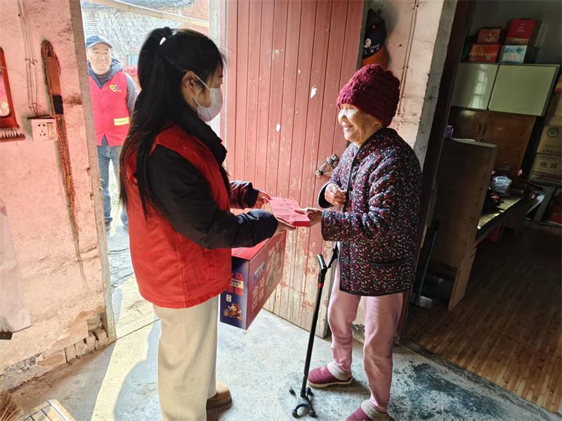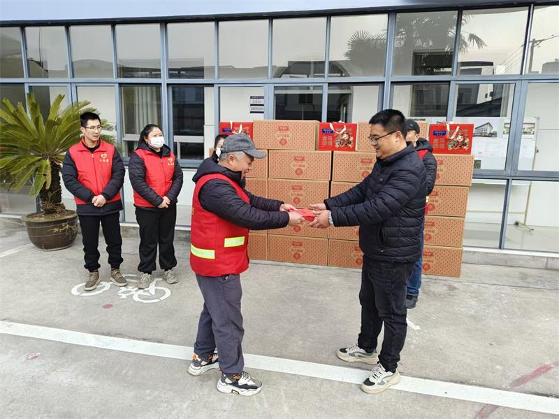 新春将至,暖意渐浓。春节的脚步渐近,团圆与温情正悄然流淌在街头巷尾。在2026年新春来临之际,为传承弘扬中华民族尊老敬老的传统美德,2月8日上午,在金彩工会慰问村委老人活动中,金彩党支部书记章国清带队慰问濮桥村、谈桥村共计两百多位老人,以实际行动为老人们送去新春祝福与关怀温暖。